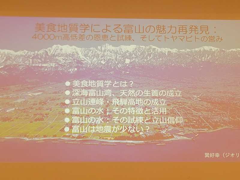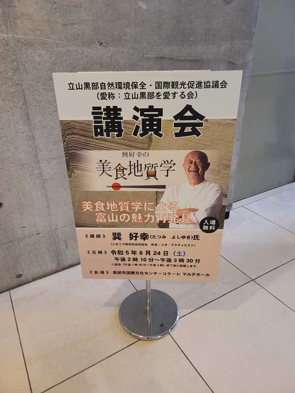 「美食地質学」を提唱されている地球科学者•巽好彦さんの講演を聴きに、24日の午後は黒部市コラーレへ。 ブラタモリ的な蘊蓄が満載でめちゃくちゃ面白かった!富山県がいかに奇跡的な地形で、硬水から軟水まで多様な水資源を持った土地なのか。それを論理的にアピールすることの価値を実感しました!