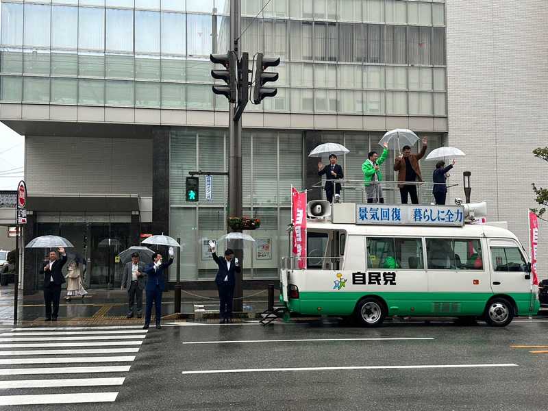ホーム>政党・政治家>藤井 だいすけ (フジイ ダイスケ)>10月9日はあいにくの雨の中、グランドプラザ前で街頭遊説。