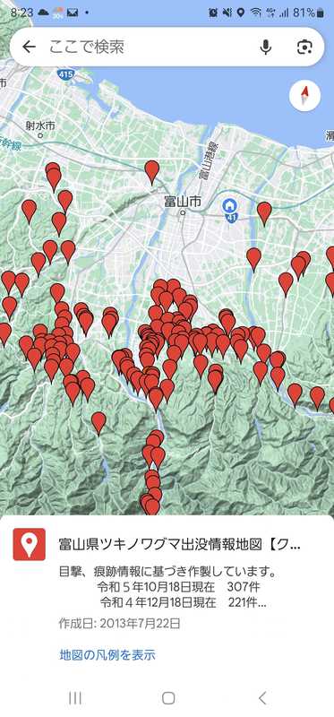 富山県ではクマっぷを公開しております。朝夕にクマは活発になるとのこと。くれぐれもご注意を!