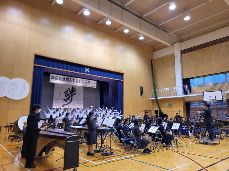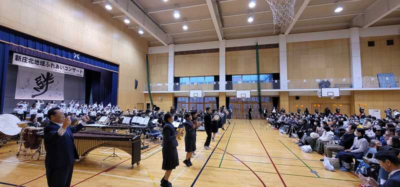 11月12日午後は新庄北ふれあいコンサート。新庄北小学校、新庄中学校、富山第一高校の吹奏楽が一同に介す年1回の演奏会です。チアリーディングやバトントワリング含めたっぷり2時間!最後は、小中高の学生130人が合奏するセカオア「RPG」と「YMCA」。冷たい雨の日でしたが会場は熱気で包まれました!