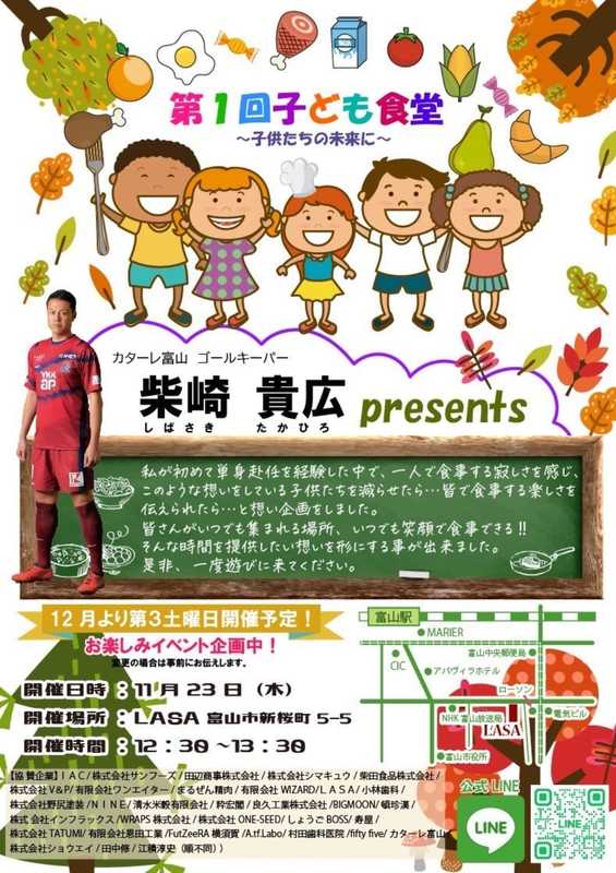 ホーム>政党・政治家>藤井 だいすけ (フジイ ダイスケ)>11月23日から新スタートした子ども食堂は、カターレ富山GKの柴崎貴広さんが発起人。
