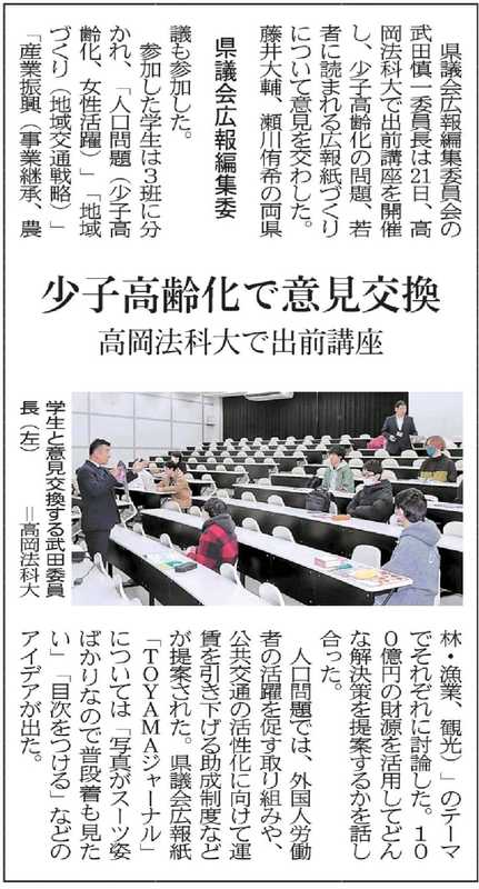 県議会の主権者教育、初めて大学で実施。高岡法科大学の政治学講義にお邪魔しました。
