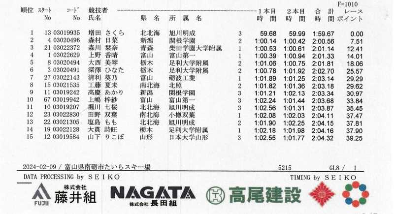 女子GSでは上野選手の4位を筆頭に富山県勢3名が見事に入賞✨