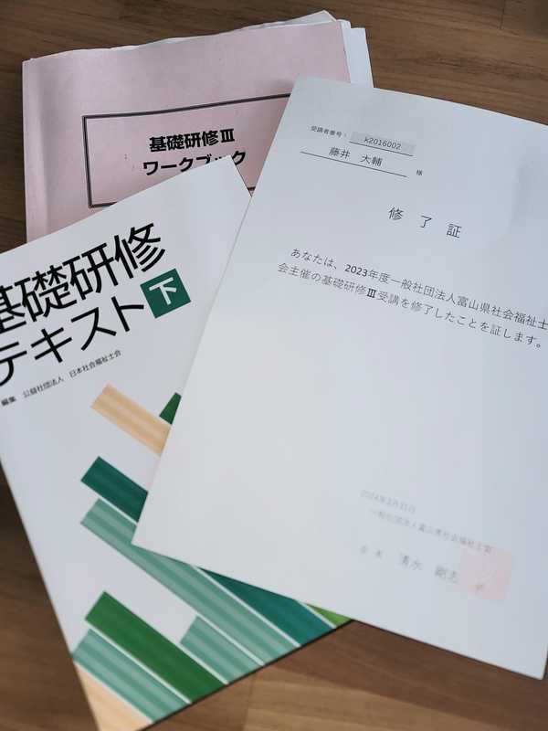 ホーム>政党・政治家>藤井 だいすけ (フジイ ダイスケ)>社会福祉士の基礎研修Ⅲの修了証が届きました。
