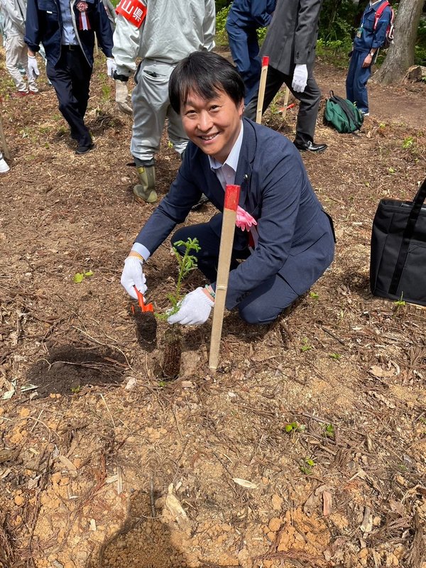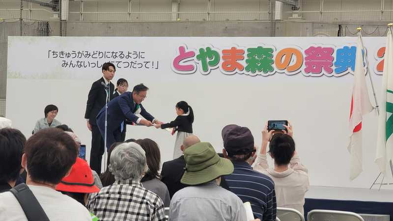 5月19日はとやま森の祭典に出席。昨夜に瀋陽~大連の訪中から帰国したばかりでしたが、めったにない植樹の機会ということで魚津桃山運動公園に行ってきました。 今回の開催テーマ「ちきゅうがみどりになるようみんないっしょにてつだって」は立山町釜ヶ渕小1の西垣莉那ちゃんの作品だそうです。