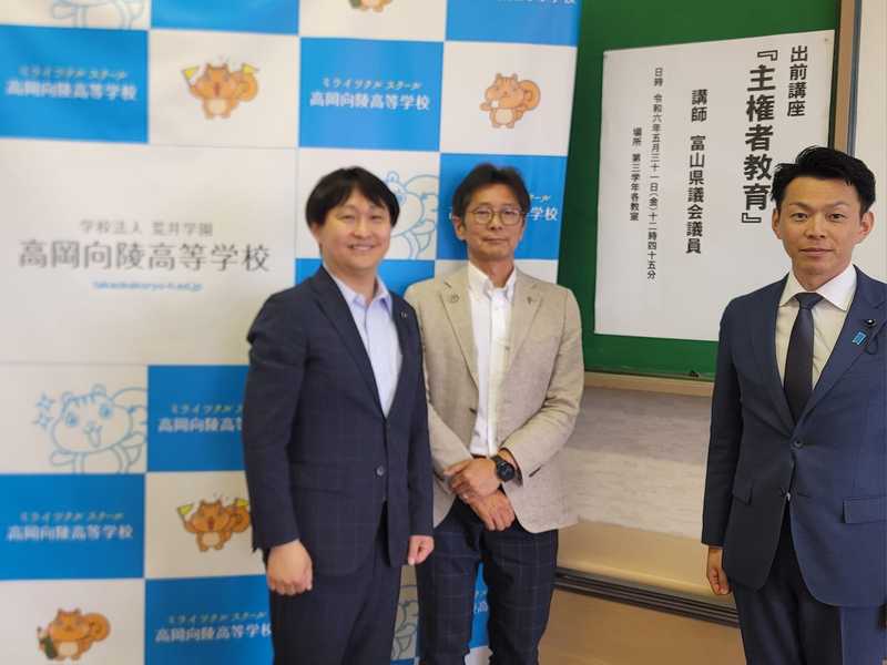 ホーム>政党・政治家>藤井 だいすけ (フジイ ダイスケ)>5月31日は高岡向陵高校3年生向けに出前授業。