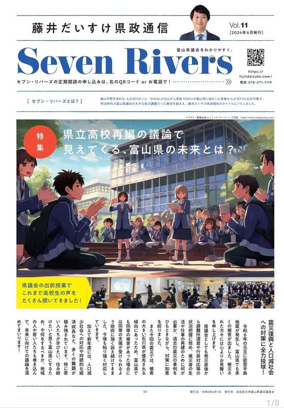 ホーム>政党・政治家>藤井 だいすけ (フジイ ダイスケ)>私の県政通信最新号「セブンリバーズ 第11号」を発刊いたしました!今回は「県立高校再編の議論で...