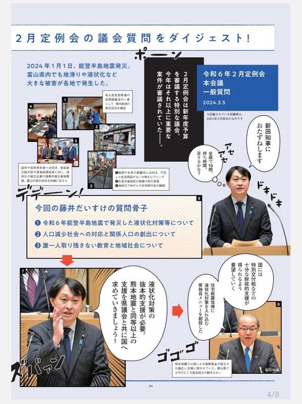 今回は「県立高校再編の議論で見えてくる富山県の未来とは?」を特集テーマに。またマンガでわかる議会質問や中国遼寧省への友好訪問レポートもあります。ぜひご一読ください!