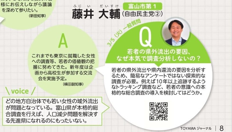 ホーム>政党・政治家>藤井 だいすけ (フジイ ダイスケ)>富山県議会だより最新号の『TOYAMAジャーナル第4号』を発刊いたしました!高校生を対象に県政...