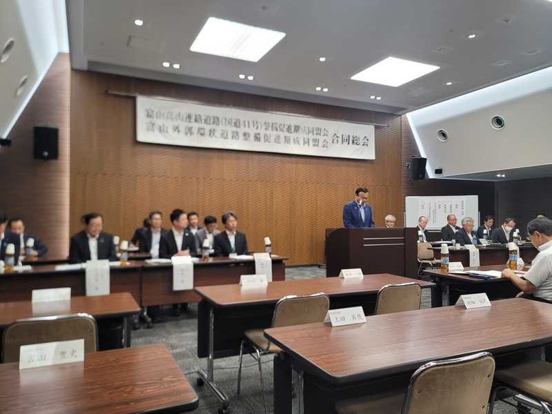 7月19日は、富山高山連絡道路及び富山外郭環状道路の整備促進に向けた総会に参加。