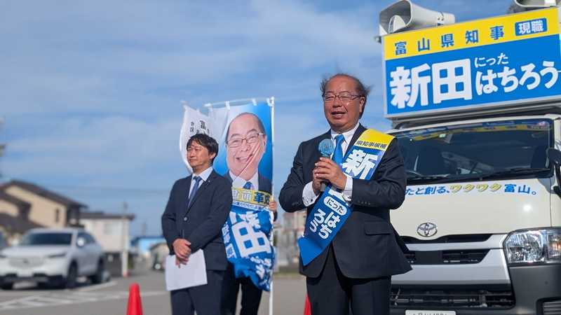 ホーム>政党・政治家>藤井 だいすけ (フジイ ダイスケ)>10月17日は富山県知事選候補者である新田はちろうさんと富山市内14ヶ所での青空集会。