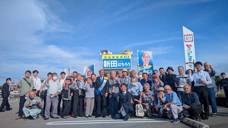 10月17日は富山県知事選候補者である新田はちろうさんと富山市内14ヶ所での青空集会。私が司会を務め、できるだけ多くの地域の方々と、新田さんが直接交流できる機会となるよう心掛けました。 私の地元の新庄地域でも、平日の昼間にもかかわらず50人以上が駆けつけてくださりました!いつも感謝です。