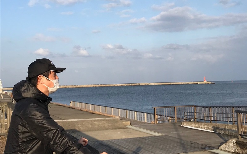 27日㈰夕方。子供と伏木の港へ。万葉岸壁に貨物船が停泊、万葉埠頭には数人が釣りを楽しんでいる。