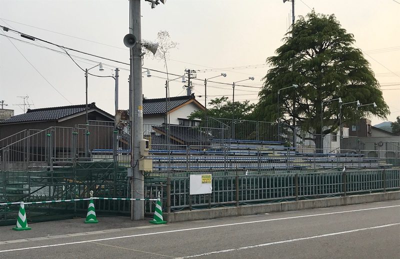 明日は大祭式、神輿渡御・母衣武者行列が行われます。明後日の曳山祭は5/3、5/14に試運転ともいえる倉出しが行われました。桟敷席も完成しました。注連縄が地域の皆さんのご協力で町中に張り巡っております。