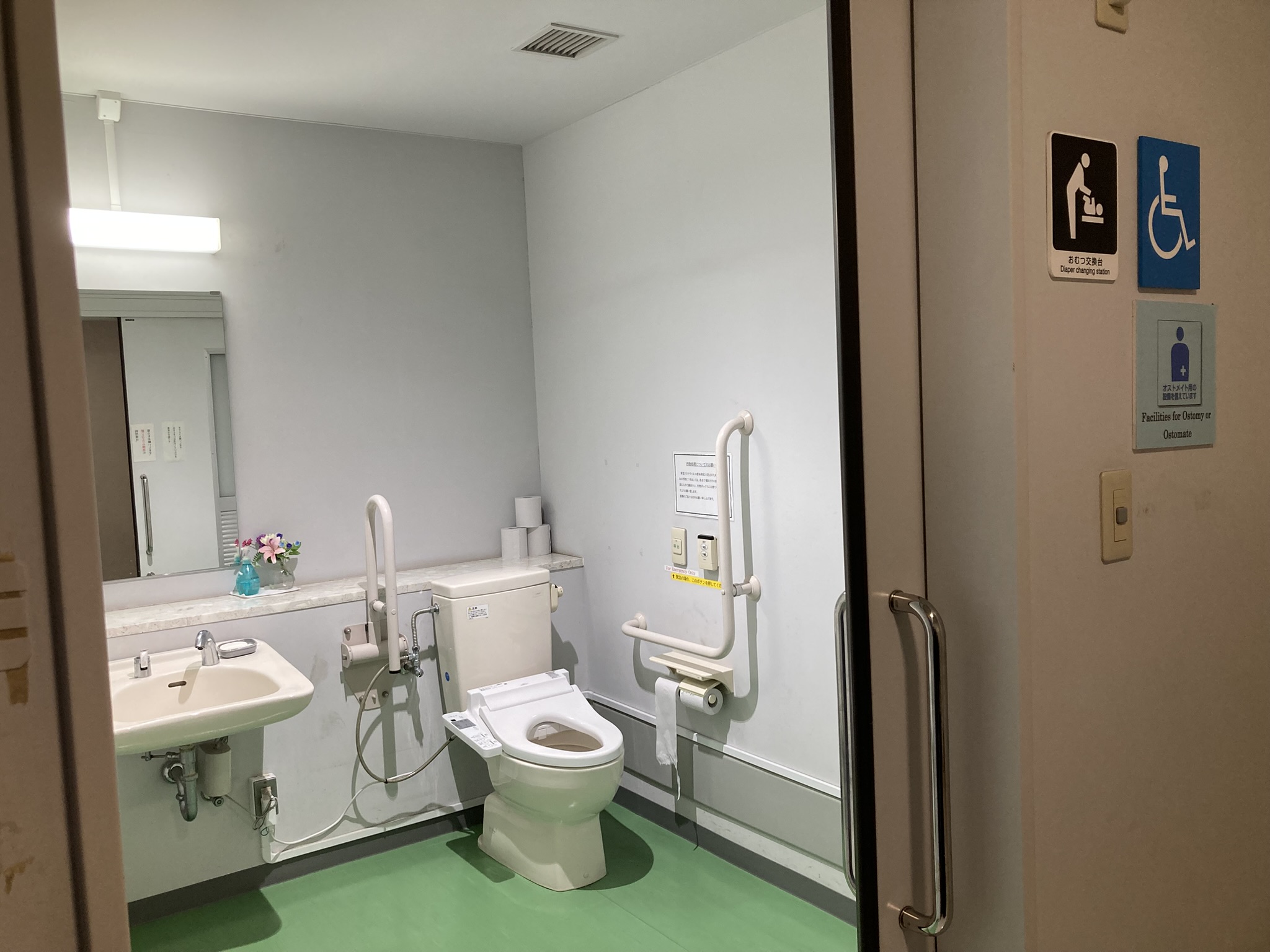 車椅子トイレ広く、スロープもあります。