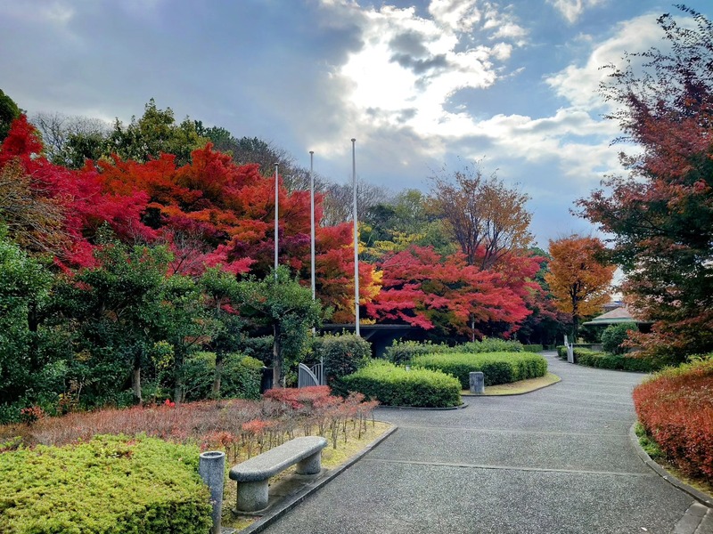 写真は会場の一宮市博物館のお庭です。素晴らしい紅葉🍁