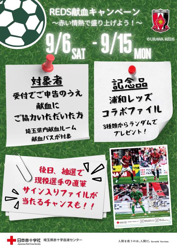 また、埼玉県赤十字血液センターでは9月6日から15日まで「REDS献血キャンペーン ~赤い情熱で盛り上げよう!~」を実施中です。