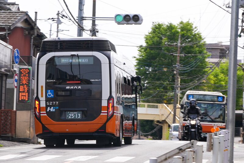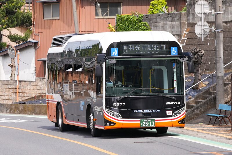 東武バスウエストさんの燃料電池バス・トヨタ「SORA」が和光市駅から和光高校循環で走っていました。 2020年に導入され、主に鶴瀬駅東口〜ららぽーと富士見の鶴02系統で運行されていたようですが、和光高校循環では初めて見ました。