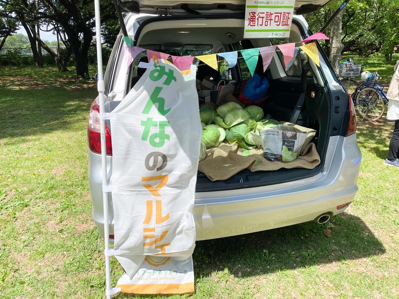 午前中は和光樹林公園でわこうフードネットワークさん主催の「みんなのマルシェ」(オープン型フードパントリー)が開催されました。食材の寄付とおすそわけ活動です。無駄になってしまうかもしれない食材を地域で回すことが出来れば、ゴミも減らせる、あげた人ももらった人も喜ぶ活動ですね。