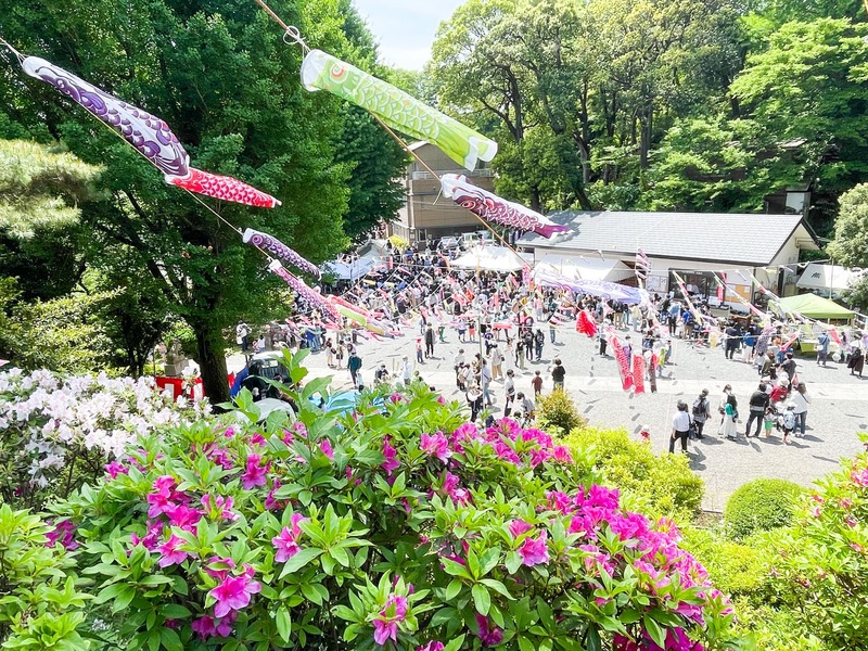 武州白子熊野神社では「つつじまつり」が開催されました。多くの来場者で盛り上がっていました。地域の自治会やおやじの会による出店、いずれのお店も長い列ができていました。