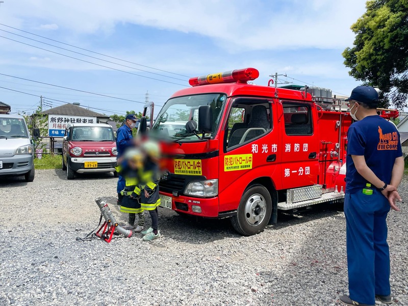和光市消防団第1分団の皆さんによるこども向けの消防車体験、撮影会も人気でした。