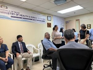 ようこそ、ベラウ国立病院にお越しくださいました。本日は北海道に研修に行った麻酔科の医師のドクター・アルランも同席させていただいた。