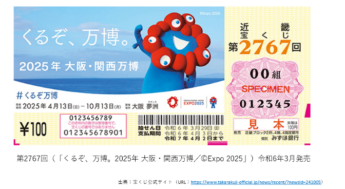 大阪・関西万博では、図柄入り宝くじの販売や、入場券が当たる企画を行っていた。