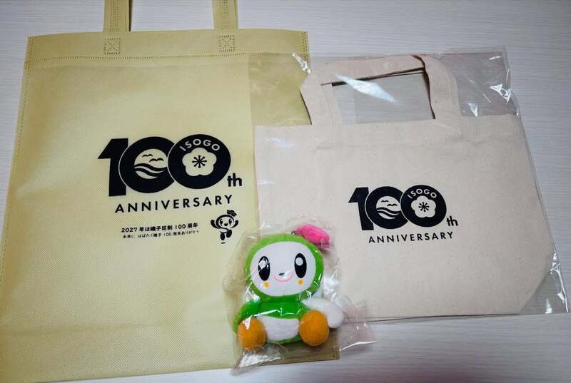 私は磯子区マスコットキャラクターのいそっぴと、来年の磯子区制100周年に向けた記念ロゴ入りのグッズが欲しくてクジを3回引きました。一回100円、かなりお得ですよね!