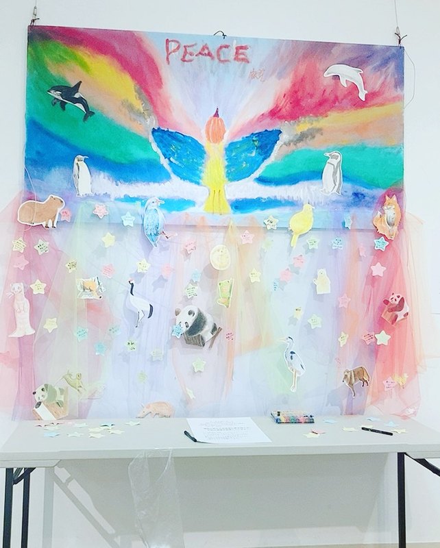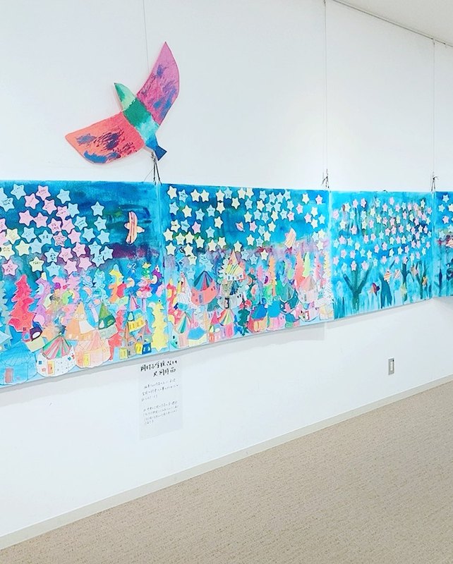 その後は塚田麻美さんの個展へ!塚田さんも地元出身!ご自身の作品も素晴らしいですが、地元の岡村小学校・中学校の生徒さん達との共同作品から放たれるエネルギーの高さに圧倒されました。
