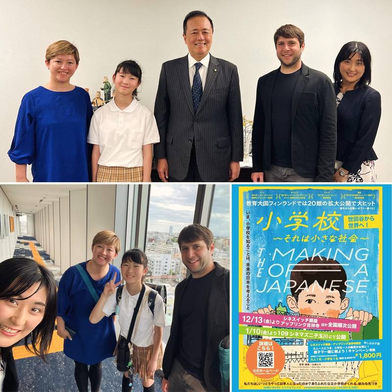 世田谷区立小学校を舞台にしたドキュメンタリー映画「小学校〜それは小さな社会〜」の山崎エマ監督、エリック・ニアリプロデューサー、主演のあやめさんが区長を表敬訪問されました。