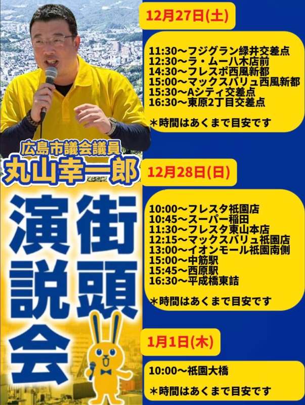 ホーム>政党・政治家>丸山 幸一郎 (マルヤマ コウイチロウ)>12:30〜のラ・ムー八木店前はコインパーキングが空いておらず断念します。