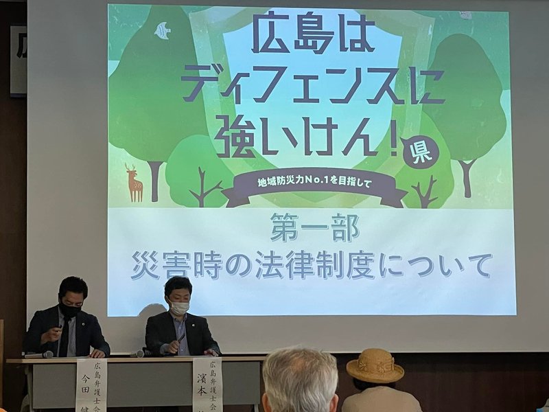 一部は、災害時における支援制度について、平成26、30年の豪雨災害の事例を伺いながらお話を聞かせて頂きました。いつもお世話になっている今田弁護士も大活躍でした。