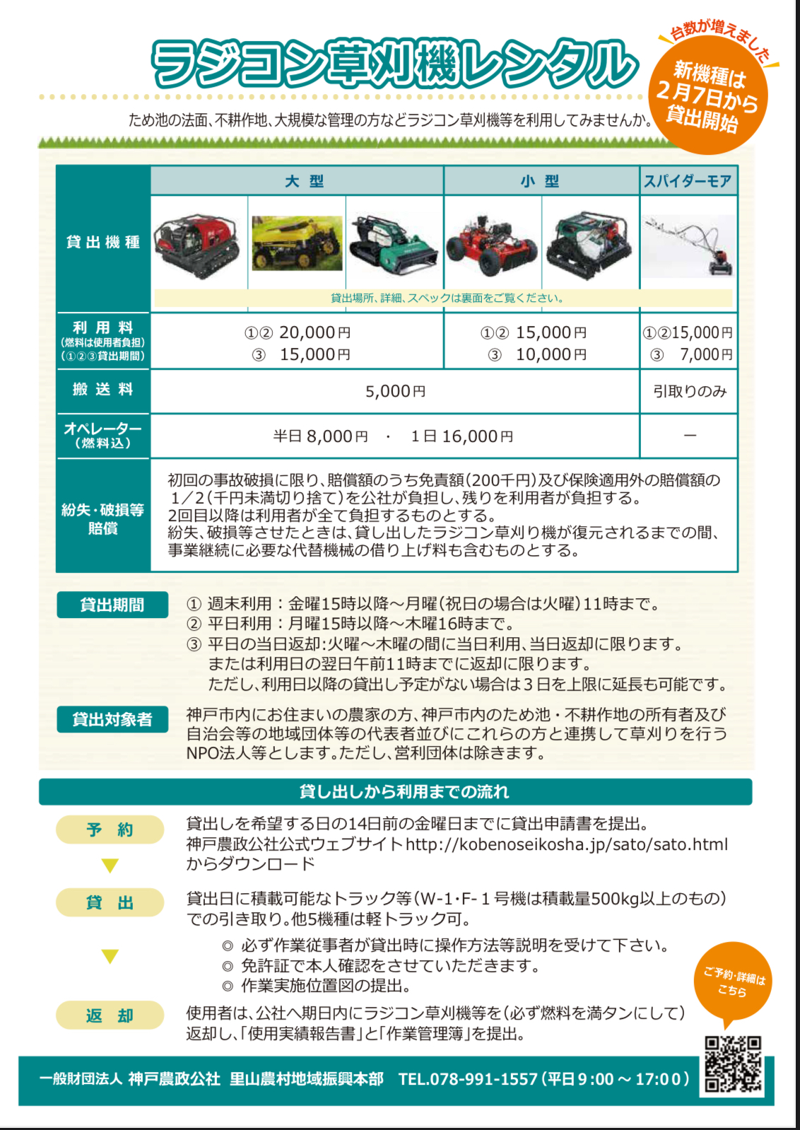 神戸市農政公社発「ラジコン草刈機レンタル事業を拡充します」の最新情報を、共有させていただきます。