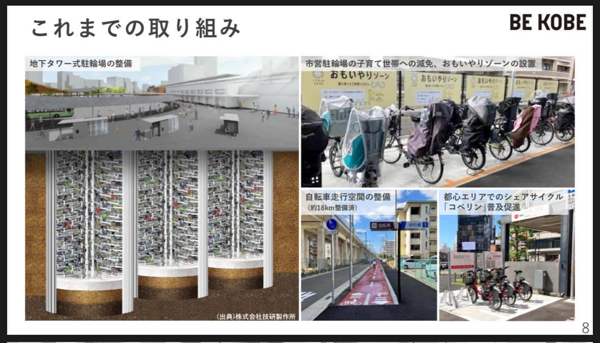 ・神出山田自転車道の利用促進やシェアサイクルの普及促進など、自転車を神戸の街づくりに活かす