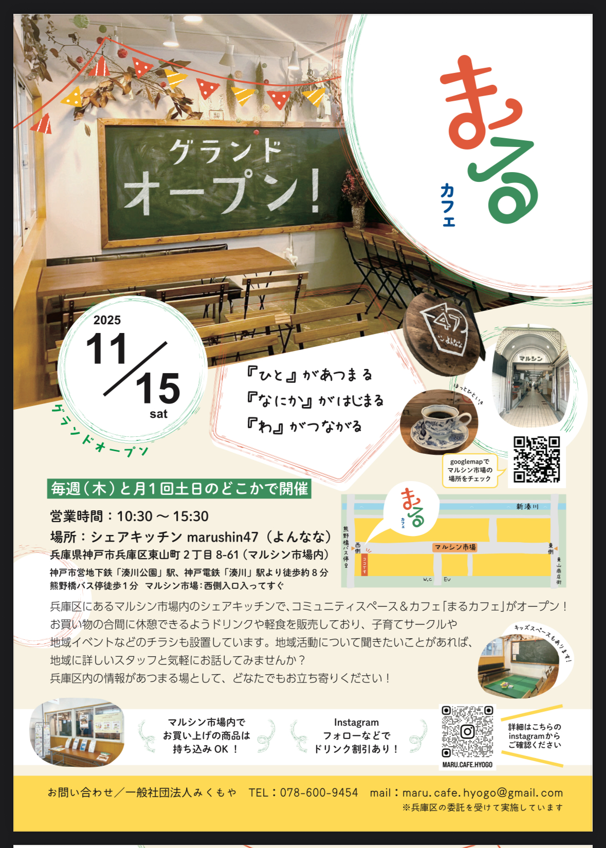 神戸市兵庫区発「人と地域がつながる場「まるカフェ」オープン・記念ワークショップ」の開催情報を、共有させていただきます。
