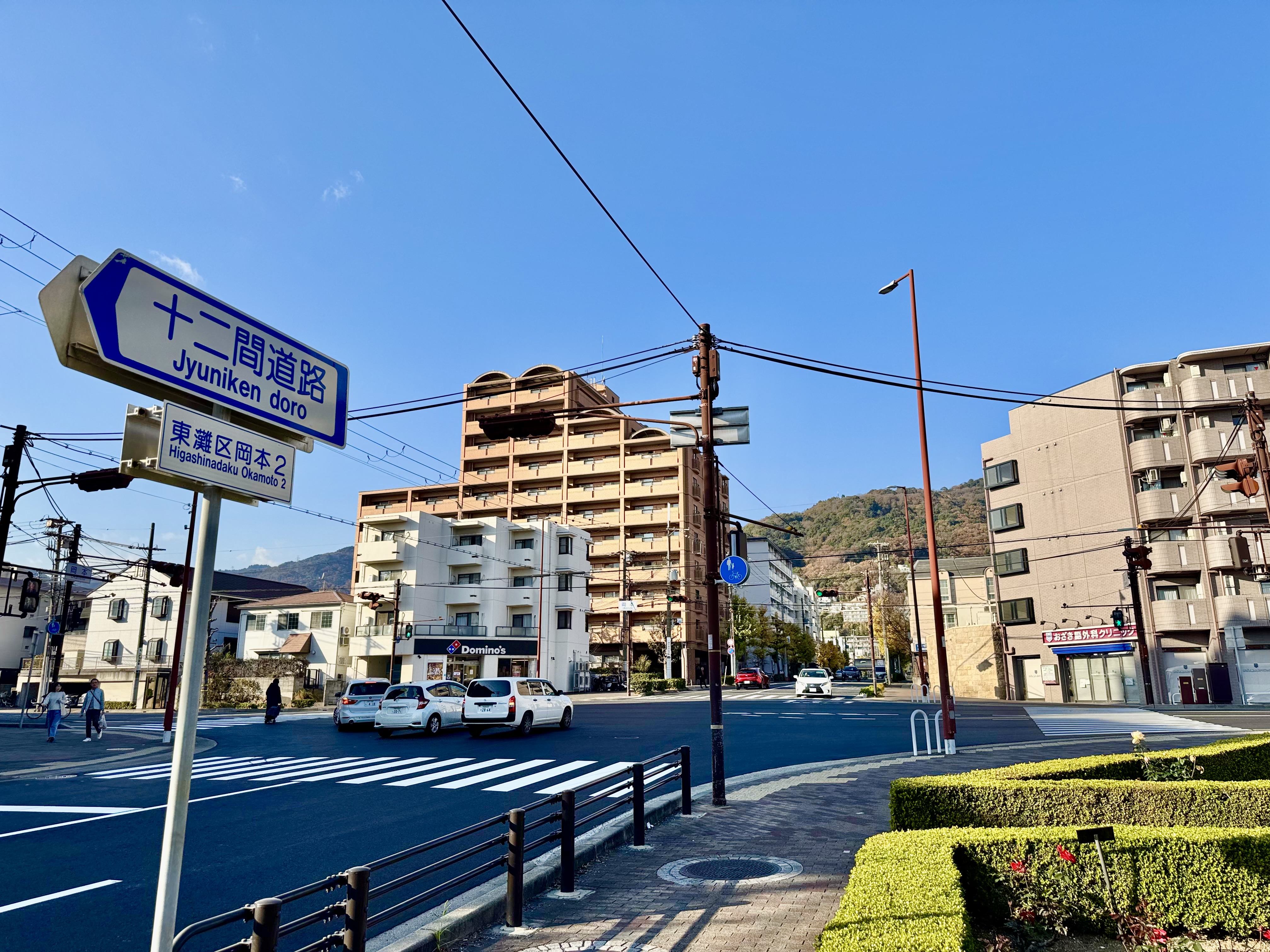 山手幹線と十二間道路が交わる「岡本バラ園前🌹」交差点内の横断歩道 3カ所(東・西・南側)がリニューアル整備されました✨