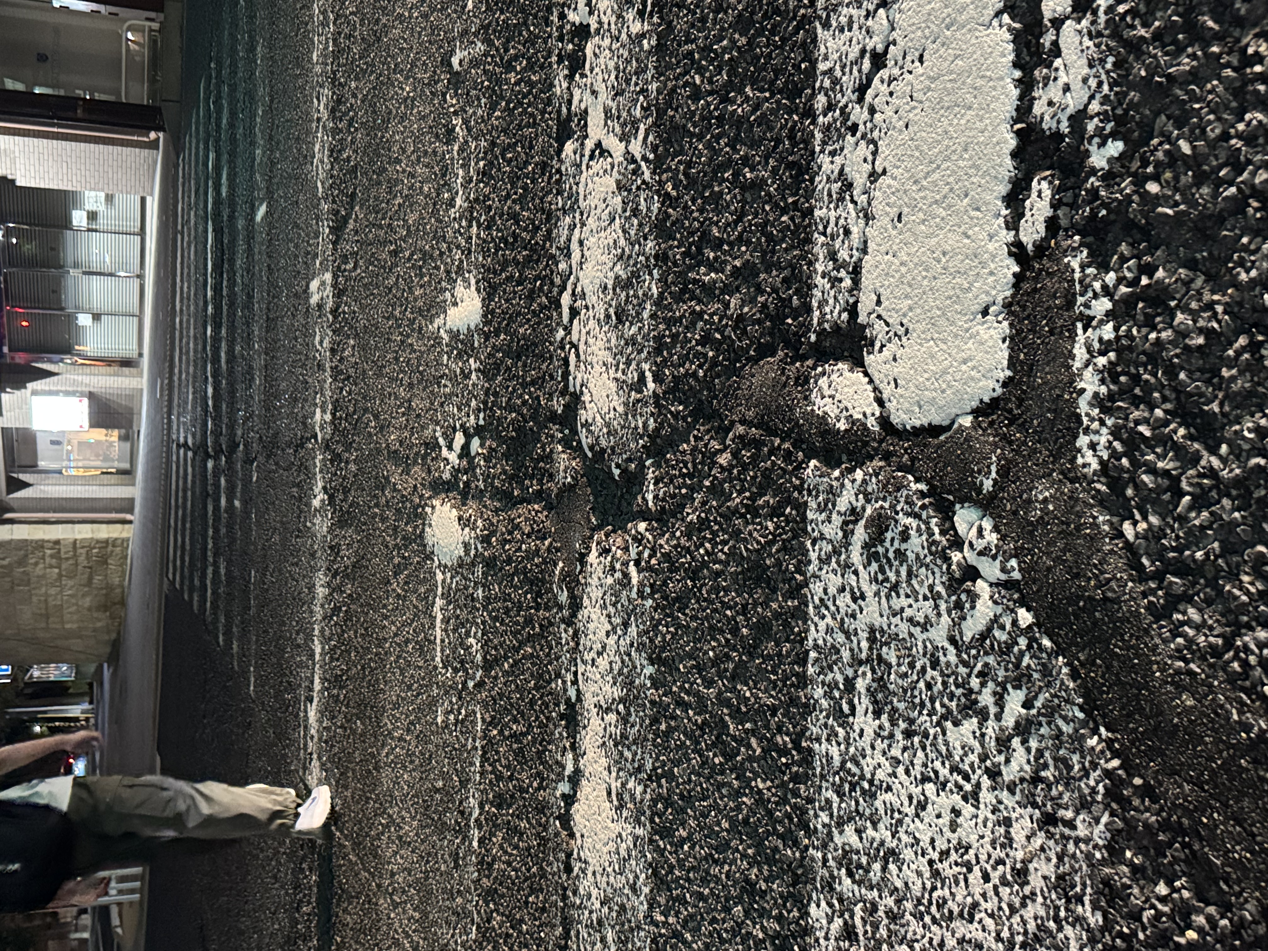 山手幹線・岡本交差点南側の横断歩道の傷みが激しく、
