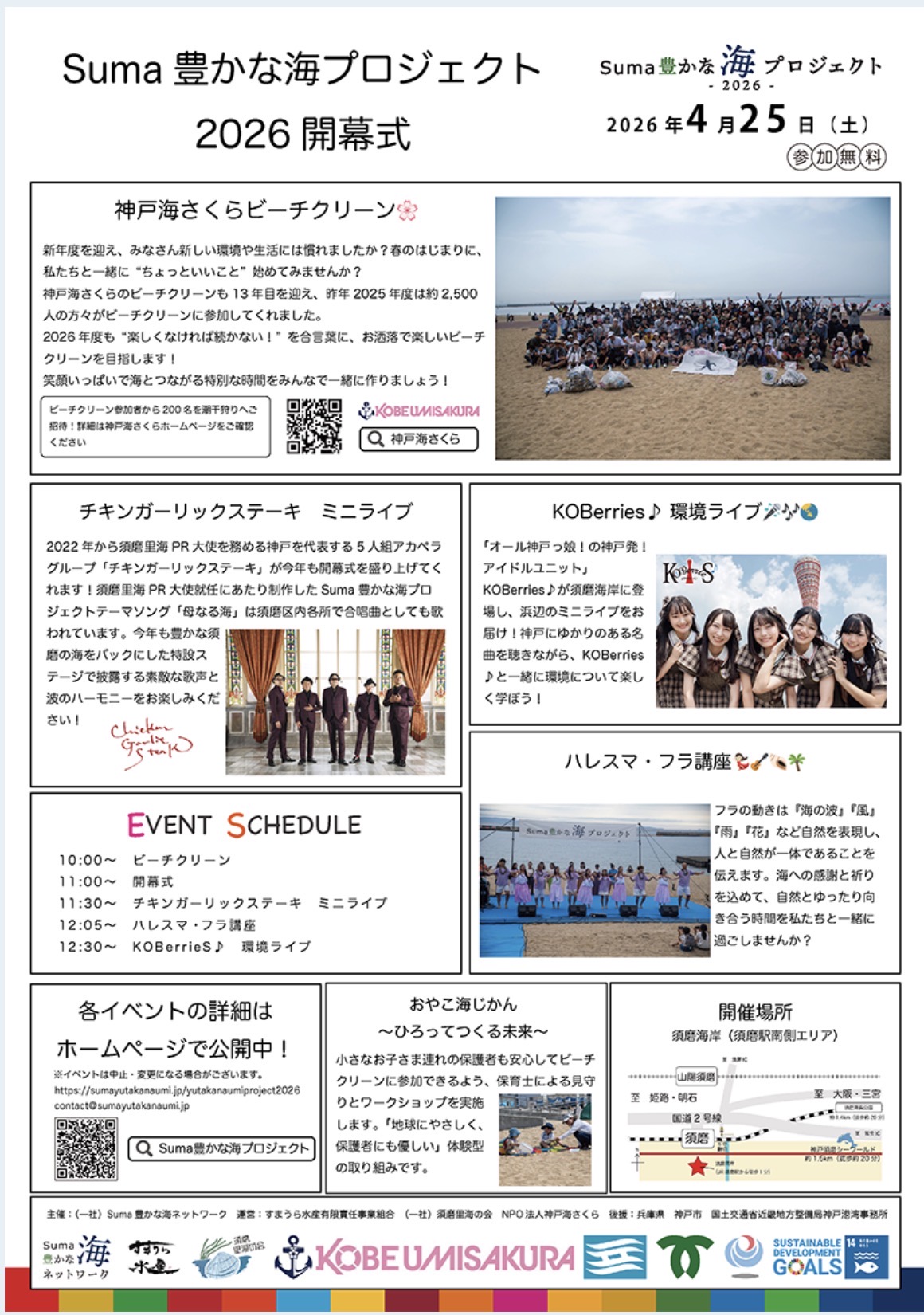 開催初日には、「Suma豊かな海プロジェクト 開幕式」も開催し、特設ステージで、豊かな海に関するパネルディスカッションや音楽ライブなどのイベントを行います。