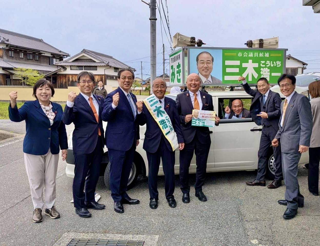 5期目の当選を目指して挑戦中の、三木浩一(みき こういち)候補の出発式と応援に駆けつけました!