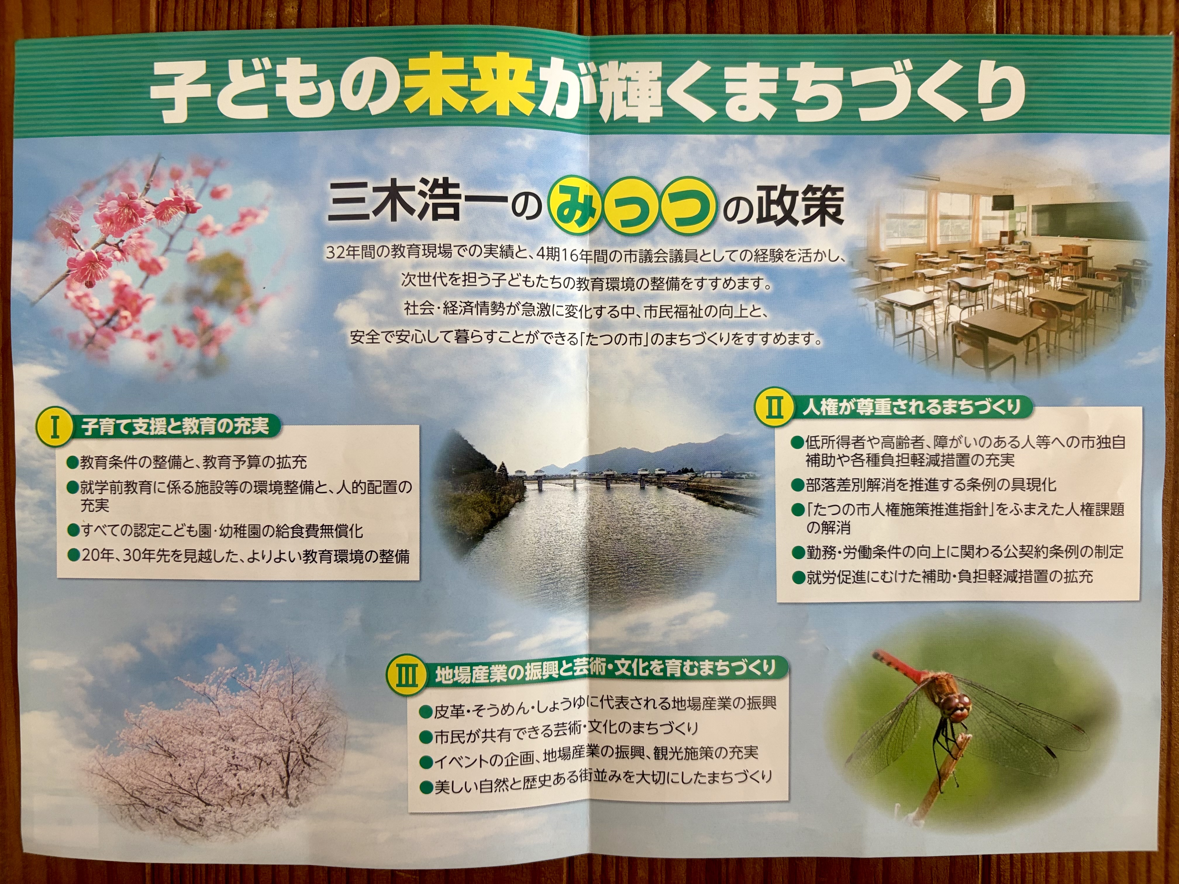 三木さんのリーフレットには、たつの市をより良くするための具体的なビジョンが詰まっています。