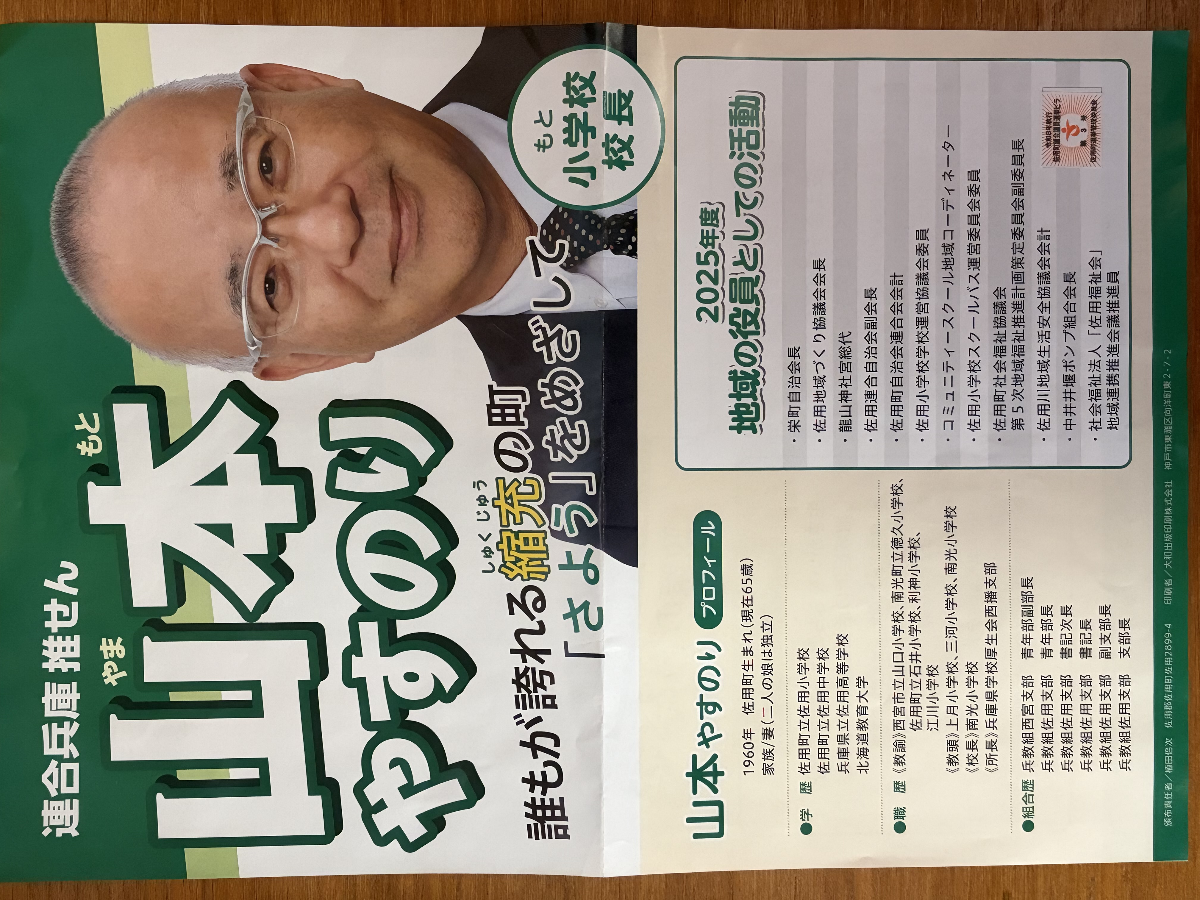 ホーム>政党・政治家>やの こうじ (ヤノ コウジ)>佐用町議会議員選挙 候補者 山本やすのりさんは「南光小学校の元校長先生」教育のプロが挑む町づくり‼️