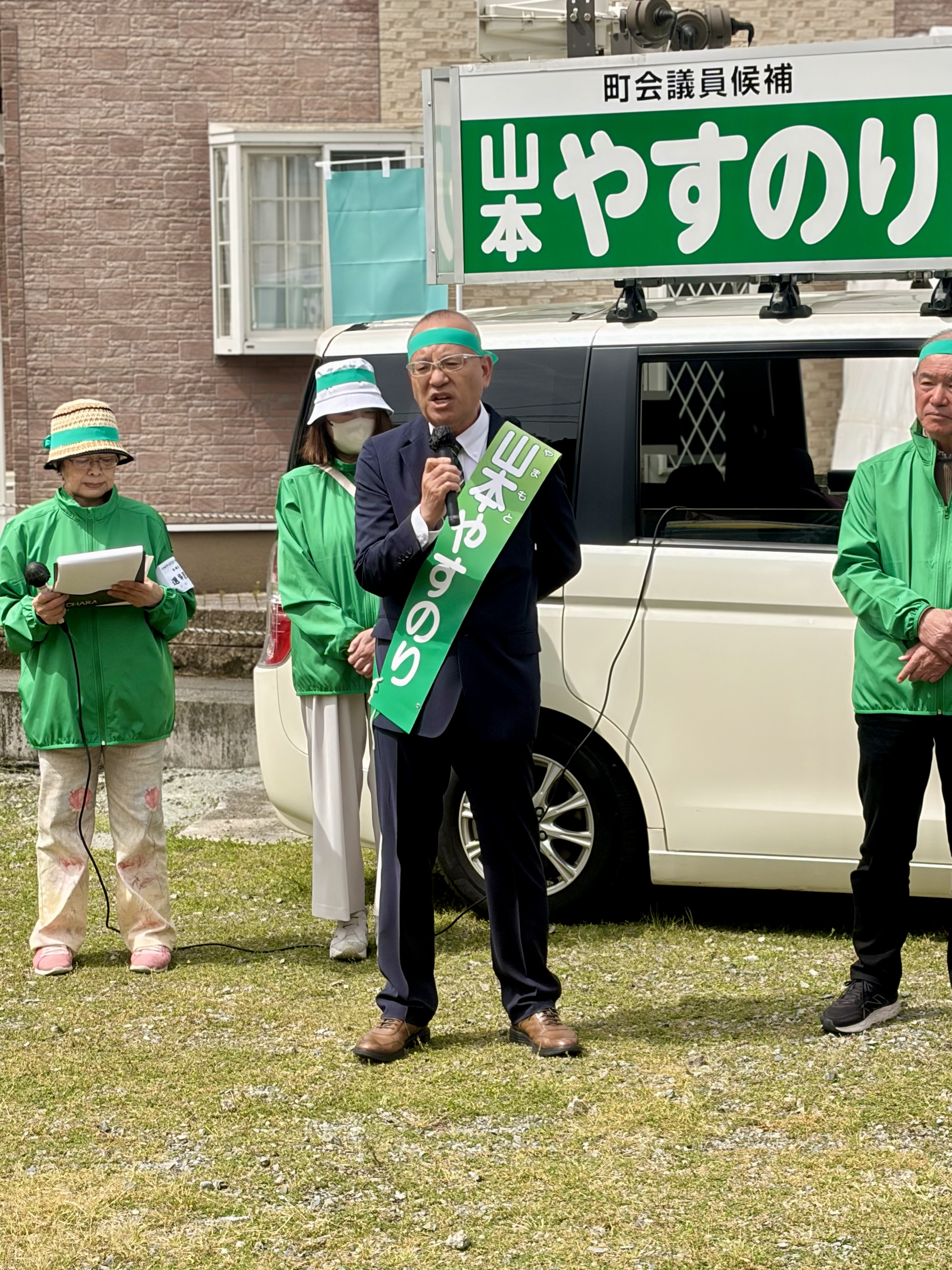 私は兵庫民主教育政治連盟の仲間とともに、今回初挑戦となる山本やすのり候補の応援のため、佐用町へ駆けつけました。