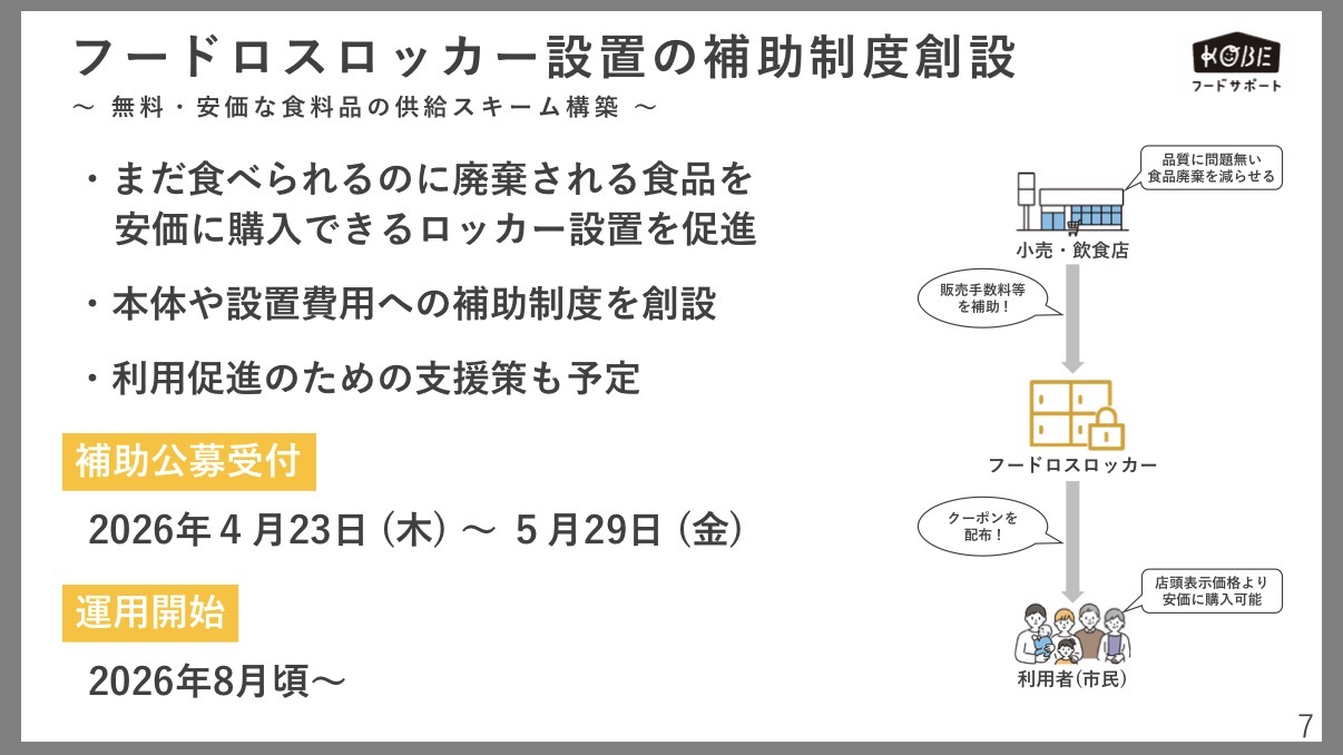 神戸市環境局事業系廃棄物対策課発「2026年度 神戸市フードロスロッカー設置経費等補助制度公募開始」の最新情報を、共有させていただきます。