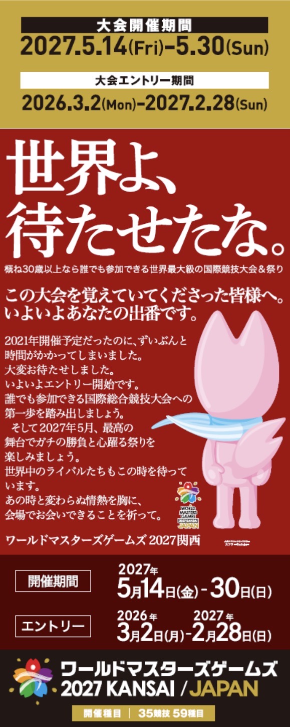 申 込:大会公式ホームページよりお申込みください。2027年2月28日(日曜)まで。