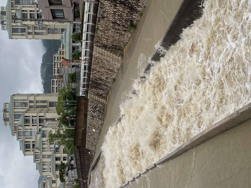 JR神戸線の真上を流れる住吉川の両側のジョギングコースにまでも、水が流れ込んでいました🏃♀️