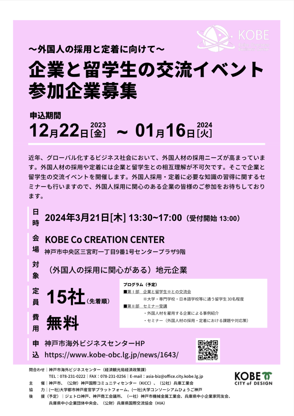- 主催:神戸市、(公財)神戸国際コミュニティセンター(KICC)、(公社)兵庫工業会