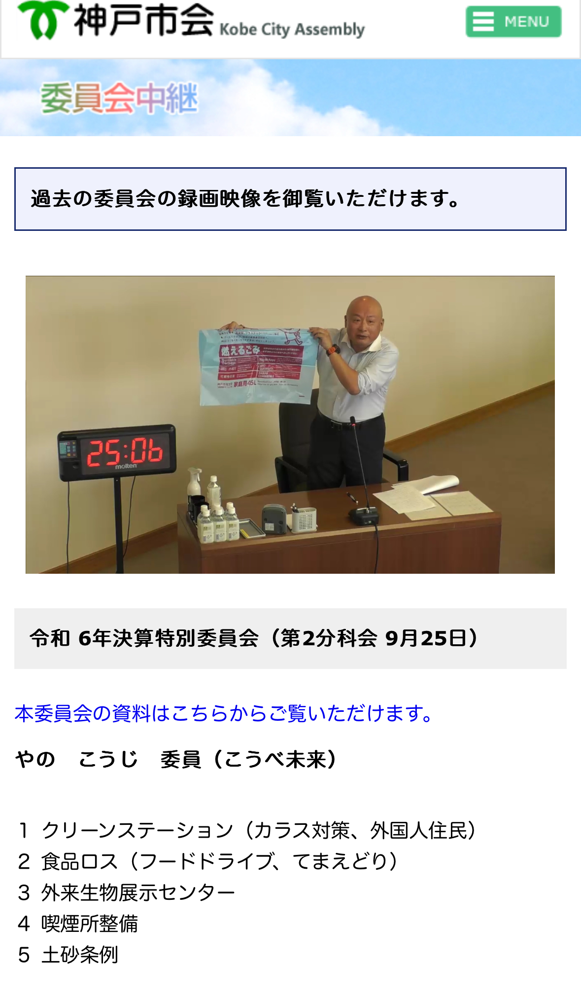 ホーム>政党・政治家>やの こうじ (ヤノ コウジ)>やのこうじ 神戸市会 決算委員会 環境局にクリーンステーション問題、食品ロス、喫煙所対策等を質疑