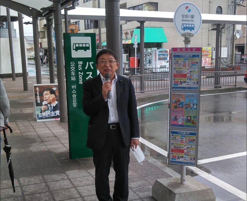 朝は安倍川駅での街頭報告活動からスタート。