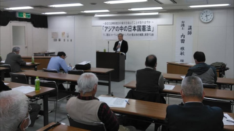 11月3日は雨でごみ拾いジョギングはお休み、午後は憲法フォーラム講演会「アジアの中の日本憲法(講師、内田雅敏さん)」に参加しました。1972年日中共同宣言、1995年村山談話、1998年日韓共同宣言などで戦争と植民地時代の過去の反省と償い、歴史認識の共有の道筋を安倍政権が逆戻りさせてしまったこと、先人達がアジアの平和に向けた努力を受け継いでいく必要性、平和資源であるカイロ宣言、村山談話などが活用できることを学びました。平和への思いをしっかりと受け継いでいきたいと思います。