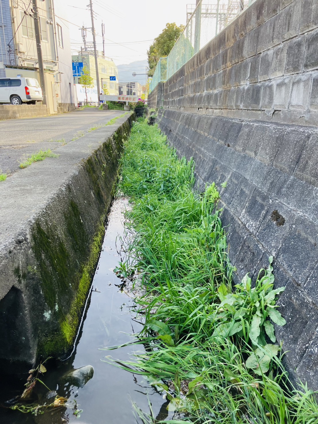 仕事終わりの夕方から、近所の水路の除草作業20m程行いました。